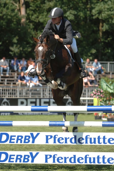 Vielversprechende Jährlingsstute aus erfolgreicher Anpaarung! Vollbruder gekört und leistungsgeprüft mit Noten bis 9,0 für Rittigkeit und Leistungsbereitschaft! So wird auch sie abstammungsgemäß klar doppelveranlagt sein und für Amateur und Profi gleichermaßen geeigent. Der Vater Cafe au lait, Siegerhengst seiner Körung, HLP Sieger und BuCha Finalist, war selbst siegreich in der schweren Klassen und hat sich in den letzten Jahren einen Namen als Doppelvererber mit Spitzennachzucht gemacht. So wurde Cafe's Casimir" (Cafe au lait x Calido x Grannus) gefeierte Preisspitze der Oldenburger Eliteauktion, ist bereits in jungen Jahren Seriensieger in S- Dressuren und international Intermediaire I siegreich. Stute Kasselmanns Cafe's Caletta (Cafe au lait x Calato) ist ebenfalls bereits S-Dressur platziert und international Grand Prix siegreich. Cafe's Matts (Cafe au lait x Don Frederico) wurde zweitteuerstes Dressurpferd der Oldenburger Summer Mixed Sales. Weitere Jungpferde aus springbetonten Mutterstuten sind bereits mehrfach in Dressurpferdeprüfungen A bis M platziert und sind bemerkenswert bewegungsstark und kopfklar. Dass die Cafe au lait Nachkommen im Springsport bis zur schweren Klasse überzeugen steht außer Frage, so zum Beispiel aus unserer Zucht: Cafe's Champus: gekört, Vizeweltmeister der jungen Pferde Cafe Junior: gekört, international erfolgreich in Saudi Arabien Cafe's Columbo: gekört und sporterfolgreich in Frankreich Cafe's Don Rubin: gekört, 4jährig als jüngstes Pferd Bronze beim Dobrocker Deisterchampionat, jetzt 5jährig mehrfach siegreich in Springpferde L, M platziert und qualifiziert zum BuCha. Cafe`s Deconi: gekört, grade 3jährig 50 Tage Leistungsprüfung mit Noten bis 9,0 abgelegt! Stationiert bei Paul Schockemöhle zeugte Cafe au lait schon etliche international erfolgreiche Springpferde, u.a. "Royce", siegreich im FEI CSI5* $500,000 Rolex Grand Prix Wellington. Cafe au lait selbst war unter Philipp Weishaupt Bundeschampionatsfinalist und ist bis S*** Springen erfolgreich gewesen, ist aber auch mit drei überdurchschnittlichen GGA ausgestattet und dressurmäßig auf S Niveau ausgebildet worden. Unsere Fohlen bekommen täglich Mineralfutter und Fohlenstarter, regelmäßig EQUISTRO Haemolytan und Ipaligo Foal. Wurmkuren und Schmied sind natürlich ebenfalls selbstverständlich. Auch die Muttertiere bekommen die ganze Trächtigkeit hindurch spezielles Stutenfutter, täglich Saftfutter und Leinöl, sowie Heu ad libitum. Daher ist unsere Nachzucht stets im besten Gesundheitszustand. Weitere Fohlen und Nachwuchspferde aus eigener Zucht auf Anfrage. Es stehen auch immer wieder einige tragende Zuchtstuten zum Verkauf. Videoanfragen etc. ausschließlich vorab über WhatsApp möglich!