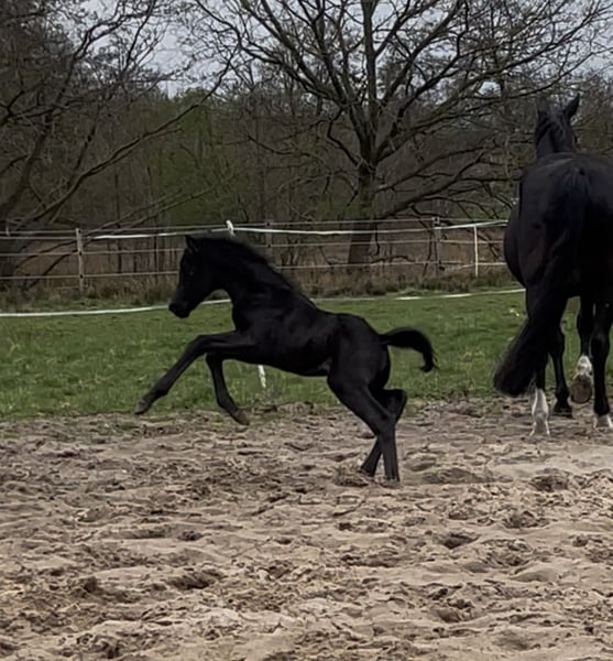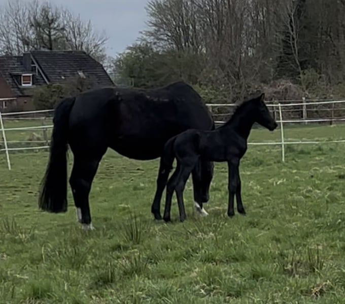 Aufgrund von Bestandsverkleinerung und Aufgabe der Zucht gebe ich, schweren Herzens, diese wunderschöne Jährlingsstute von Dream Boy ab. Sie ist ein Rappe komplett ohne Abzeichen und wird im April ein Jahr alt. Perlchen verfügt über 3 sehr gute GGA, sowie einen lieben, ehrlichen und umgänglichen Charakter. Desweiteren bringt sie ein gutes Exterieur mit ordentlichem Fundament mit. Zurzeit misst sie ca. 1,50m, Endmaß schätze ich um ca. 1,70 m. Durch die Anpaarung ist der Inzuchtkoeffizient auf 0,03% gesunken und der Vollblutanteil auf ca. 31% angehoben worden, (Horsetelex) was zur Weiterzucht sicherlich interessant sein kann. Die kleine Maus lebt bei uns in Offenstallhaltung zusammen mit einer gleichaltrigen Jährlingsstute und deren Mutter. Eine tolle Offerte für Zucht und Sport! Sie wird ausschließlich an einen Bestplatz verkauft. Preisverhandlungen möglich, aber nur vor Ort. Kontaktieren Sie mich gerne bei Interesse oder für weitere Informationen, gerne auch per WhatsApp. Angaben zum Mutterstamm: Stamm der Lunda, Schridde 613 Mutter Daiquiri M, Verbandsprämienstute, ist Großmutter zu Moreno OLD und Bocelli TN. Ihr letztes Fohlen von Zackerey wurde mit der Oldenburger Eliteprämie ausgezeichnet. Daiquiri M ging nach SLP direkt in die Zucht. Sie hat diese in Springen und Dressur gleichermaßen gut absolviert. Es gibt mehrere sport- und zuchterfolgreiche Nachkommen in diesem Stamm. Dieser geht auf einen hannoverschen Springstamm zurück.