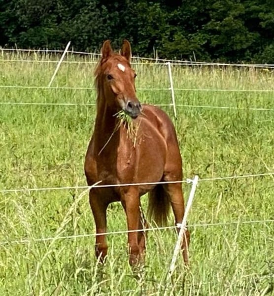 Vivina ist eine nun 2 1/2 jährige Dunkelfuchsstute, die nicht nur durch ihre schwungvollen und elastischen Bewegungen besticht, sondern auch durch ihr zutrauliches und unerschrockenes Wesen. Als Oldenburger Elitefohlen ausgezeichnet kam sie zur Aufzucht in die Herde. Nun ist sie wieder zurück und mit allem vertraut, was altersgemäß ist. Dabei ist sie sehr unkompliziert. Vivina hat aktuell ein Stockmaß von ca. 159 cm. Mit der Abstammung von Vivaldos aus einer Fürst Romancier x Kondor XX- Mutter weist sie auch ein tolles Pedigree vor. Interessant als gehobenes Nachwuchspferd für den ambitionierten Reiter. Aktueller TÜV liegt vor, ohne Befund.