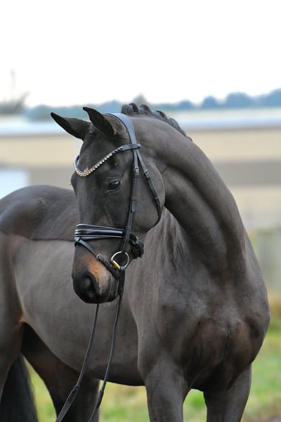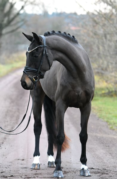 Quelle adorable pouliche ! Cette jument de près de 4 ans, issue de Vaderland, a été doucement monté à la fin de l'été et est actuellement travaillé en liberté trois fois par semaine en manège et en extérieur. Elle est très volontaire et dotée d’un bon tempérament, avec beaucoup de punch, mais reste toujours douce et facile à manipuler. Dotée de bonnes allures de base, elle pourra débuter en concours de jeunes chevaux l’année prochaine – une excellente monture pour un cavalier plus petit ou un bon cheval de transition ! Un contrôle radiographique récent de cette année est bien sûr disponible. À voir et à tomber amoureux ! Habituée au paddock et au pré quotidien.
