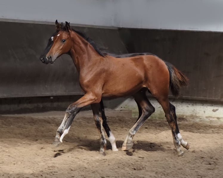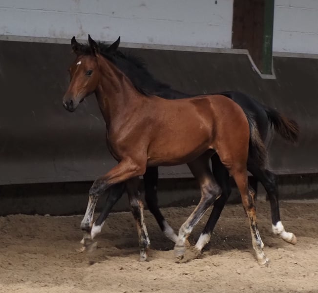 Dit type merrieveulen overtuigt met haar kwaliteit en de zeer interessante bloedlijnen voor zowel dressuur als springen! Ze is een van de veulens met de sterkste bewegingen van haar jaargang! Haar volle broer wordt momenteel klaargemaakt voor de keuring. Vader "Cafe au lait", keuringswinnaar, HLP winnaar en BuCha finalist, heeft de afgelopen jaren naam gemaakt met zijn extreem succesvolle nakomelingen in zowel dressuur als springen op gevorderd niveau. Cafe's Casimir" (Cafe au lait x Calido x Grannus) was de gevierde top prijswinnaar op de Oldenburg Elite Auction, is een seriewinnaar in dressuurwedstrijden op gevorderd (S) niveau op jonge leeftijd en heeft internationale Intermediaire I wedstrijden gewonnen. Kasselmann's merrie Cafe's Caletta (Cafe au lait x Calato) heeft zich ook al geplaatst in dressuurwedstrijden op gevorderd (S) niveau en won internationale Grand Prix wedstrijden. Cafe's Mats (Cafe au lait x Don Frederico) was het op één na duurste dressuurpaard op de Oldenburger Summer Mixed Sales. Andere jonge paarden uit springgeoriënteerde fokmerries hebben zich al meerdere keren geplaatst in proeven voor jonge dressuurpaarden op gevorderd (A) tot middelmatig (M) niveau en zijn opvallend sterk bewegend en helder van geest. Het lijdt geen twijfel dat de Cafe au lait nakomelingen overtuigend zijn in de springsport tot op gevorderd niveau (bijv. van ons ras Cafe's Champus: goedgekeurd, Vice Wereldkampioen jonge paarden, Cafe Junior: goedgekeurd, internationaal succesvol in Saoedi-Arabië). Cafe au lait, gestationeerd bij Paul Schockemöhle, heeft al een aantal internationaal succesvolle springpaarden gebracht, waaronder "Royce", die de FEI CSI5* $500,000 Rolex Grand Prix Wellington won. Cafe au lait was zelf Bundeschampionat finalist onder Philipp Weishaupt en is succesvol geweest tot en met gevorderd (S***) niveau in de springsport, maar heeft ook drie overtuigende gangen en is opgeleid tot gevorderd (S) niveau in de dressuursport. Onze veulens krijgen dagelijks mineraalvoer en veulenstarter, regelmatig EQUISTRO Haemolytan en Ipaligo Foal, ontwormen en een hoefsmid zijn ook vanzelfsprekend. De moederdieren krijgen ook speciaal merrievoer tijdens de dracht, dagelijks sapvoer en lijnzaadolie, en hooi ad libitum. Dit zorgt ervoor dat onze nakomelingen altijd in optimale gezondheid verkeren! Er zijn altijd een paar drachtige fokmerries te koop, waarvan je er een paar kunt vinden in de andere advertenties. Inruil van fokmerries met geschikte afstamming mogelijk. De eveneens hoogwaardige, stijlvolle volle zus is al verkocht, de volle broer wordt klaargemaakt voor de keuring en is ook ter plaatse te bezichtigen. Video aanvragen alleen mogelijk via WhatsApp. Ze is al gespeend en kan dagelijks worden verplaatst.