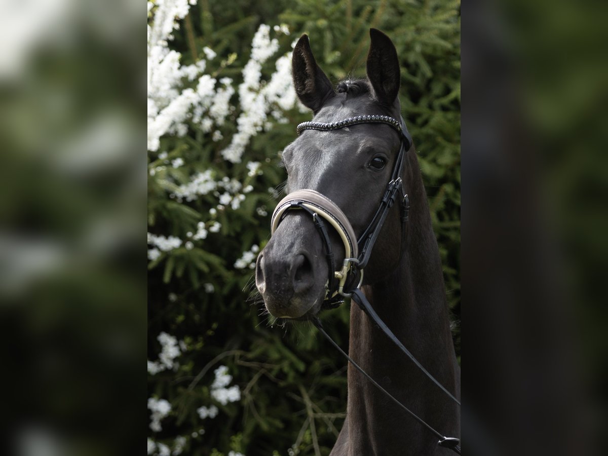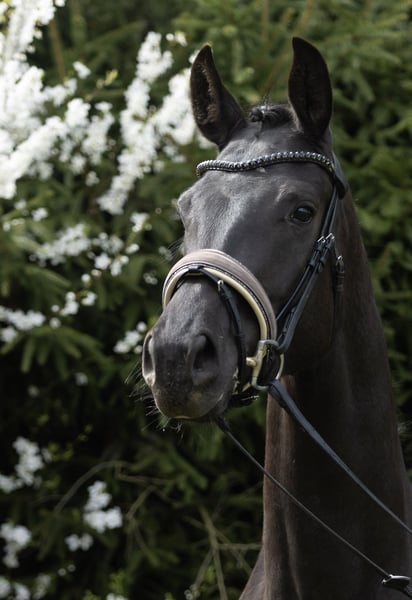 For sale is a stunning 3-year-old black mare, whose appearance and temperament truly impress. She is currently in gentle preparation for starting under saddle. During this process, she is being introduced to her future tasks with plenty of time, patience, and sensitivity. A rider has already taken her for a trial ride, and she handled this new experience with complete calmness and confidence. The mare proves to be uncomplicated, brave, and fearless in all situations. She takes new impressions calmly and impresses with her positive attitude and willingness to learn. In terms of conformation, she is excellently built, boasting a modern appearance and a striking presence that makes her a real eye-catcher. An ideal prospect for riders seeking a promising young horse with a clear mind and a solid foundation. X-rays of the neck, withers, and back are available and show no abnormalities. Please contact us first via WhatsApp.