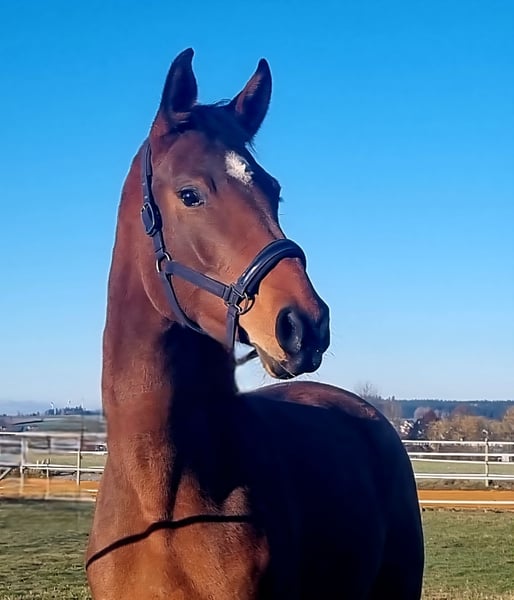 Wunderschöne qualitätsvolle 3j. Stute bester Abstammung mit hervorragenden Bewegungen, sehr lieb und umgänglich. Sie stammt aus einem bis Intermediaire erfolgreichen Mutterstamm. Leider hat die Stute Shivering. Aber wer sich Zeit für sie und ihre Ausbildung nimmt, wird ganz viel Freude mit der Stute haben.