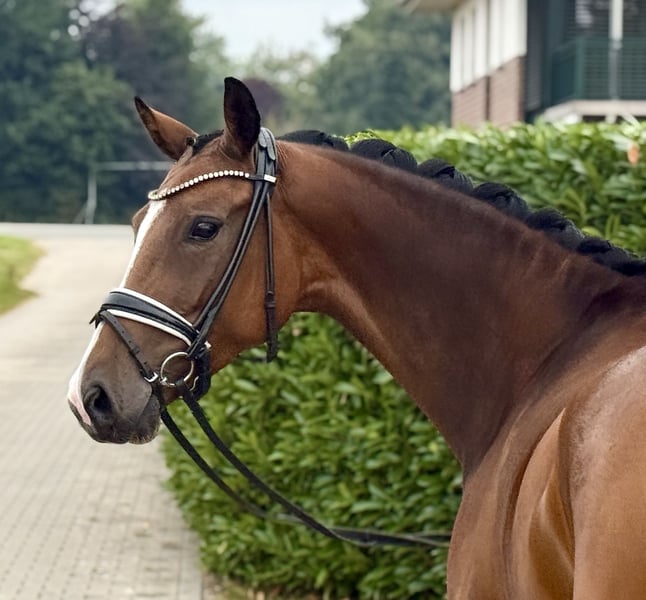 Dreamy Oldenburg Mare For sale is a beautiful Oldenburg mare, born in 2021. With her elegant brown coat and a height of 160 cm, she is a real eye-catcher. This talented mare is excellently suited for dressage and already shows promising potential. She is well-mannered, easy to handle, and has a pleasant temperament. Her movements are fluid and expressive, making her a promising partner for ambitious riders. The mare is regularly vaccinated, dewormed, and has an up-to-date health check. She has already gained initial experience under saddle and shows a strong willingness to learn. If you are looking for a talented and charming mare with the potential to succeed in dressage, please feel free to contact us for more information or to arrange a viewing. We look forward to your inquiry!