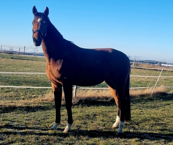 Beautiful, high-quality 4-year-old mare of excellent lineage with outstanding movement. She comes from a dam line that has achieved success up to Intermediaire level. Unfortunately, the mare has mild shivering. However, anyone willing to invest time in her training will enjoy her immensely, as she is a very sweet and friendly mare. She is currently being lunged and is handling everything wonderfully and with enthusiasm. All offspring from this line are very rideable, easy to handle, and eager to perform; many have achieved success up to Intermediaire level. The shivering is only occasionally noticeable during very tight turns, but with regular training and gymnastics, it can be managed well. If interested, you are welcome to view the mare. She is not sold to dealers!