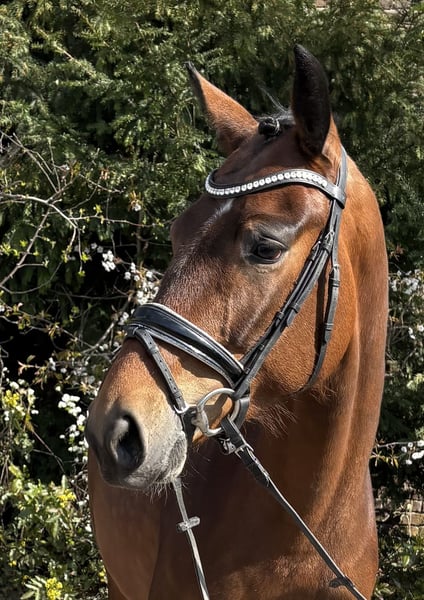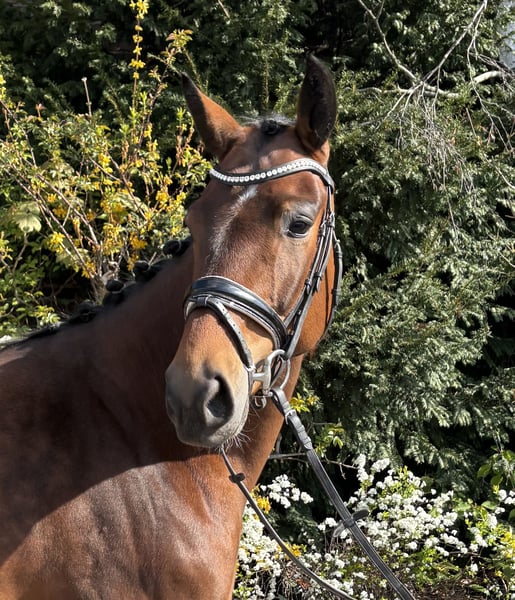 Freundliche Stute mit gutem Charakter und top Tüv zu verkaufen. Die Stute ist gut angeritten und geht auf Reitpferdeniveau. Ablongieren ist nicht notwendig. Im Trab und Galopp ist sie schon sehr sicher, im Schritt fehlt ihr noch etwas Gelassenheit, sodass sie zum Schreiten kommt. Ihre Mutter war erfolgreich bis Inter I mit über 70% und hat auch in jungen Jahren etwas mehr Zeit gebraucht um sich zu entwickeln. Die Stute ist sehr lieb und einfach zu reiten.