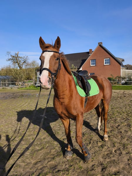 Schweren Herzens verkaufe ich hier meine 4 Jahre junge Oldenburger Stute " Best of Whisky " inklusive Zubehör (Trense etc) Da ich in absehbarer Zeit nicht viel Zeit für sie haben werde und ihr Talent nicht verkommen soll. Es ist kein Notverkauf. Sie kennt Offenstall und Boxenhaltung, sowie auf Stroh und Spähen. Sie ist gesund und hatte bis jetzt noch nie etwas, weder eine Verletzung noch Husten oder überhaupt einen schlechten Tag, sie ist regelmäßig geimpft und Entwurmt. Sie wird am Boden gearbeitet, logiert und kennt Reiter, wird aber gerade erst angeritten. Sie kennt Anhänger Fahrten, geht regelmäßig voll ausgerüstet mit mir und meinen Hunden spazieren, kennt Trecker, Autos und alle anderen Landwirtschaftlichen Geräte sowie Hufschmied und Tierarzt Natürlich. Sie ist eine wirklich besondere Stute mit einem total lieben Charakter, lässt alles mit sich machen, mag es zu arbeiten. Sie wurde 2021 auf der Oldenburger Fohlenschau Prämiert und könnte auch zur Stutenleistungsprüfung gehen. Ihr Abstammung ist auch tadellos, zu ihrem engsten Familienkreis gehören Grand Prix Sieger wie Rubin Royal, Weltmeyer, Best of Gold, Belissimo M , Diamond Hit und Don Schufro und ist dadurch auch für die Zucht ein echter Glücksfall. AU kann mit Wunschtierarzt durchgeführt werden. Bei Interesse schreiben sie mir gerne.