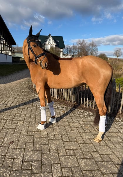 For sale is this stylish 6-year-old mare by Baron x Gribaldi. She descends from the Ferro bloodline, with her full sister Glenda in the third generation. Gribaldi is well-known, especially through Totilas. Baron is one of the most movement-rich stallions in Denmark, combining the bloodlines of highly successful dressage sires. Beyond her striking appearance and outstanding pedigree, she also impresses with her rideability! She is very responsive to aids and always eager to please her rider, with the notable ability to learn quickly. She achieved a score of 8.6 in her mare performance test. She has never been ill, has been regularly vaccinated and dewormed, and has very good hooves. In handling, she is completely uncomplicated and has no bad habits. Naturally, she is well-behaved at the blacksmith and loads easily. A current health certificate is available. She is located in 35708 and can be tried out there at any time. For interest and further questions, please contact: 017620052380, WhatsApp available as well.