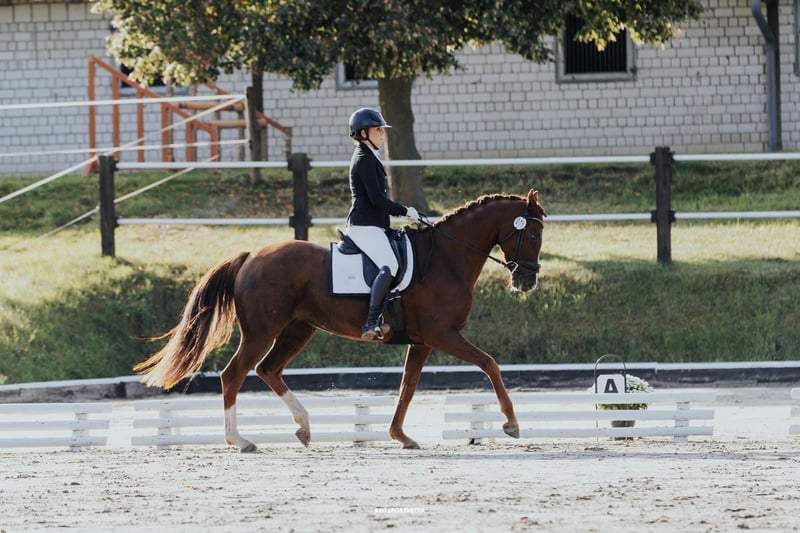 Name: „Danciette“ | Alter: 7 Jahre | Stockmaß: 166 cm | Abstammung: Dancier x Rubinstern Noir | Farbe: Dunkelfuchs Danci überzeugt nicht nur durch ihr elegantes Exterieur, sondern auch durch ihr Talent und ihre Rittigkeit. Bereits A-Dressuren mit Noten um 8,0 gewonnen, sicher in L-Lektionen eingeführt, Außengalopp und fliegende Wechsel beherrscht sie spielerisch. Sie ist fein an den Hilfen, leicht in der Hand, sensibel und sehr lernbereit – ideal für ambitionierte Reiter mit feinem Sitz und Erfahrung in der Jungpferdeausbildung. Wer ihr Sicherheit und Vertrauen gibt, findet in Danci eine Partnerin mit Perspektive bis in die höhere Dressur. Im täglichen Umgang ist sie unkompliziert, menschenbezogen und anhänglich. Röntgen-TÜV (04/2022) ohne Befund, regelmäßig geimpft, entwurmt und Zähne gemacht. Wir wünschen uns für Danci ein liebevolles Zuhause mit artgerechter Haltung und Pferdegesellschaft. Platz vor Preis. Vorstellung und Probereiten nach Absprache (30 € Aufwandsentschädigung, bei Kauf verrechnet). 📞 0177 5440788