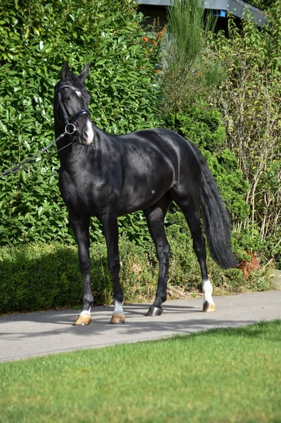 Zum Verkauf unsere 6-jährige Rappstute "Sezuans Donnerlottchen" mit ausgezeichnetem Interieur und besten Reiteigenschaften. Im täglichen Umgang überzeugt sie mit ihrer hohen Rittigkeit, großer Gelassenheit und ihrem stets angenehmen Wesen. Donnerlottchen ist altersentsprechend ausgebildet und bereit für Dressurpferde M, mit noch viel Potential für die weitere Zukunft. Sie zeigt sich unter dem Sattel sehr arbeitswillig, lernfreudig und möchte einfach ihrem Reiter gefallen. Dank ihres ausgeglichenen Charakters ist sie das ideale Junioren- oder Amateurpferd, das Freude in Ausbildung und Turniersport bereitet. Ein echtes Herzenspferd, das sich sich auf ihre kommenden Aufgaben freut!