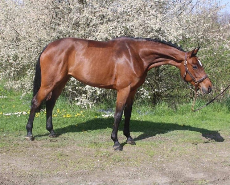 Available Lady KM, an 8-year-old mare standing at 16.1 hh. Possesses many qualities and is very respectful under saddle, but somewhat delicate for high-level sport. Sold for breeding purposes. Excellent maternal lineage with numerous performers. Veterinary check completed; she has a history of dermatitis. Has foaled once at age 4. Price negotiable.