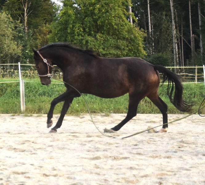 Wegen Zuchtaufgabe und Auslandsaufenthalt ist diese bildschöne, brave Verbandsprämienstute abzugeben geb. 2017, dunkelbraun, ca. 176 cm Stm, v. FAHRENHEIT x STEDINGER, im Offenstall mit viel Bewegung aufgewachsen, spät von S-Reiterin angeritten In Oldenburg als Zuchtstute VPr. eingetragen und SLP absolviert, seitdem nur noch sporadisch geritten Hatte 2 Fohlen (2023 und 2025) von BENICIO, beides Prämienfohlen, beides Dunkelfüchse, nicht besamt für 2026 Mutterlinie: 2 Elitestuten in Folge, dann StPrST Vollbruder der Mutter: Oldenburger Prämienhengst Oldenburger Stutenstamm 74
