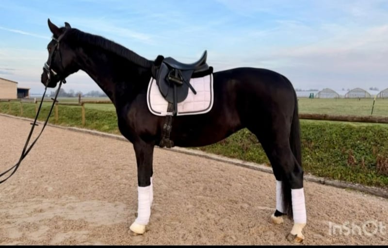 Standort: 77694 Kehl | DR | Stute | Rappe | *2017 | 165 cm | v. Frascino x Florencio I | Zum Verkauf steht eine bildschöne und talentierte, 2017 geborene Rappstute. Die Stute wurde dreijährig direkt vom Züchter gekauft und ist seither in einer Hand. Sie wurde schonend ausgebildet und kann zahlreiche Siege und Platzierungen (bis L*-Dressur siegreich) vorweisen, wobei sie viel Potenzial für weitere Förderung mitbringt. Orelia verfügt über drei sehre gute GGA, wobei besonders ihr raumgreifender Schritt hervorzuheben ist. Sie ist sehr leistungsbereit, lernwillig und mit angenehmen Go ausgestattet- ein echtes Powerhouse, das gefordert werden möchte. Aufgrund ihrer Motivation und Sensibilität ist sie für Anfänger eher nicht geeignet, kommt dafür aber einem ambitionierten Reiter, der ihre Energie und ihr Potenzial zu schätzen weiß, sehr entgegen. 💯 Aufgrund ihrer guten Abstammung wäre sie sicherlich auch für die Zucht interessant. Gute Röntgenbilder von Rücken inkl. Hals liegen vor. Für das Probereiten wird eine Pauschale in Höhe von 40,00 Euro erhoben, die bei einem Kauf natürlich verrechnet wird. Bei Fragen stehe ich jederzeit gerne zur Verfügung. (telefonisch, Whats App, Email) 😊