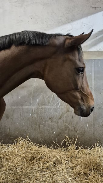 For sale is this 9-year-old sensitive mare. Approximately 1.70m tall. Rock for me × Luxius She was raised in a herd and has spent most of her life on the breeder's pasture. Therefore, she is a bit of a challenge; she is now used to being groomed and led. As she is untrained, we are gradually starting her education. She does not have a vet check and shows a type of "cocked leg" on her left hind leg when uncertain. Only occasionally visible. Since she is a bit of a challenge and should only go to experienced hands, she is being sold below value, and placement is prioritized over price!!!!