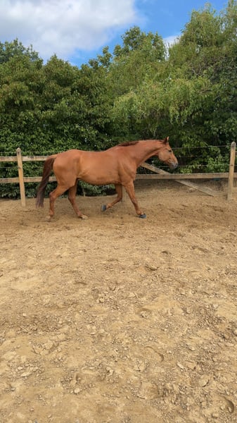 Pour des raisons professionnelles et de santé, je dois, à mon grand regret, vendre mon cheval de cœur, un hongre au grand cœur et un très bon cheval de confiance, Donni. C'est un Oldenbourgeois de 10 ans (Don Deluxe x Ramoneur) qui a été présenté en compétition jusqu'au niveau L**. Il mesure environ 1,76 m. En raison d'un constat, il est proposé à un prix bien inférieur à sa valeur, mais il est néanmoins entièrement montable et n'est pas affecté. Il est monté de manière récréative en dressage, en saut d'obstacles et en extérieur (en extérieur, il est vraiment un cheval de confiance) et se comporte toujours bien sans devenir têtu. Actuellement, il n'est pas en pleine formation pour les raisons mentionnées ci-dessus, mais il est en phase de remise en forme, ce qu'il gère très bien, étant motivé et très sage dans son travail quotidien. Il est actuellement dans un box spacieux avec sortie quotidienne en paddock/pâture en groupe, où il est sociable et de rang inférieur. Il ne bucke ni ne monte, il est facile à charger et se comporte bien chez le maréchal-ferrant et le vétérinaire, et il entre calmement dans l'équipement de travail. Il est entièrement vacciné et un rapport de santé de 2023 est disponible. Il sera vendu avec tout l'équipement, y compris la bride, la selle de dressage + sangle, les tapis, les couvertures, les protège-boulets, etc. Il n'est pas souhaitable de le donner à une école d'équitation comme cheval d'école ! Les demandes concernant un cheval d'école ne seront pas prises en compte, je ne répondrai pas à celles-ci ! Je souhaite un foyer où il sera soigneusement pris en charge et aura une belle vie. La place prime sur le prix. Je suis heureux d'envoyer des vidéos sur demande !
