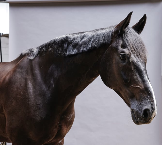 Ein Name, der besonders ist – und eine Abstammung, die es ebenso ist: Doctor Harder. Gezogen aus der Verbindung Sandro Hit × De Niro bringt er die elegante Ausstrahlung seiner Linie mit und zeigt sich charakterlich als echtes Unikat. „Hardy“, wie er zu Hause liebevoll genannt wird, überzeugt mit drei guten Grundgangarten, solider Ausbildung bis M- Niveau und erfolgreichen Turnierstarts auf L-Niveau. Er präsentiert sich dabei deutlich leistungsbereit, zuverlässig in der täglichen Arbeit und stets bemüht, seinem Reiter zu gefallen. Im täglichen Umgang ist er absolut unkompliziert, freundlich und menschenbezogen. Ein wahres Herzenspferd, das jede Art von Zuwendung genießt und dabei immer höflich bleibt. Er kennt sowohl die Arbeit in der Halle, auf dem Platz als auch entspannte Ausritte und zeigt sich dabei immer gelassen und unerschrocken. Auch kleine Sprünge absolviert er mit Freude und Übersicht, wodurch er vielseitig einsetzbar ist. Hardy sucht einen ambitionierten Reiter, der Freude am Reiten und der täglichen Arbeit hat. Er ist ideal für jemanden, der einen verlässlichen, motivierten Partner für sportliches Training und schöne Ausritte sucht. Ein toller Partner, der jetzt einen Menschen sucht, der seine liebe Art zu schätzen weiß und mit ihm seinen Weg geht. Für weitere Informationen oder um einen Besichtigungstermin zu vereinbaren, kontaktieren Sie uns gerne über WhatsApp oder rufen Sie einfach an. Vielen Dank!