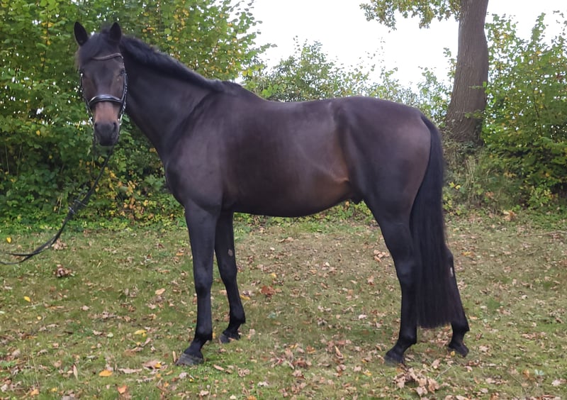 Zum Verkauf steht ein Oldenburger Wallach von Jazzman x Lauries Crusador xx x Dormello Der Wallach wurde dressurmäßig geritten und zeigte sich unerschrocken im Gelände sowie beim Auswärtstraining. Er ist herdenverträglich und schmiede- und verladefromm. Aktuell kuriert er eine Verletzung am Unterstützungsband aus und kann ggf danach wieder geritten werden. Dieses Pferd benötigt "seinen" Menschen, für den er alles bereit zu geben ist. Er liebt Routinen und interagiert mit den Menschen auf seine sehr feine Art. Das lässt ihn zu einem tollen Partner - gerade auch für alle Arten von Bodenarbeit - werden. Ein schicker Typ, der mit herausragenden GGA glänzt. Ein bereits ausgeheilter Sehnenschaden bereitete ihm im Nachgang keinerlei Probleme. Der Wallach benötigt aufgrund einer Atemwegsproblematik und MIM ein etwas spezielleres Management und wird auch nur in eine dazu passende Haltung mit ganztägigen Auslauf abgegeben.