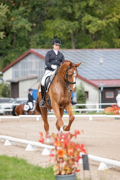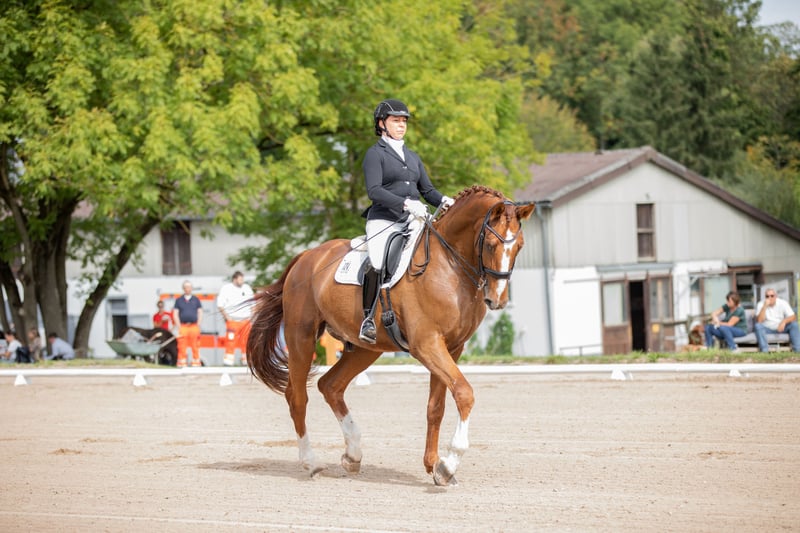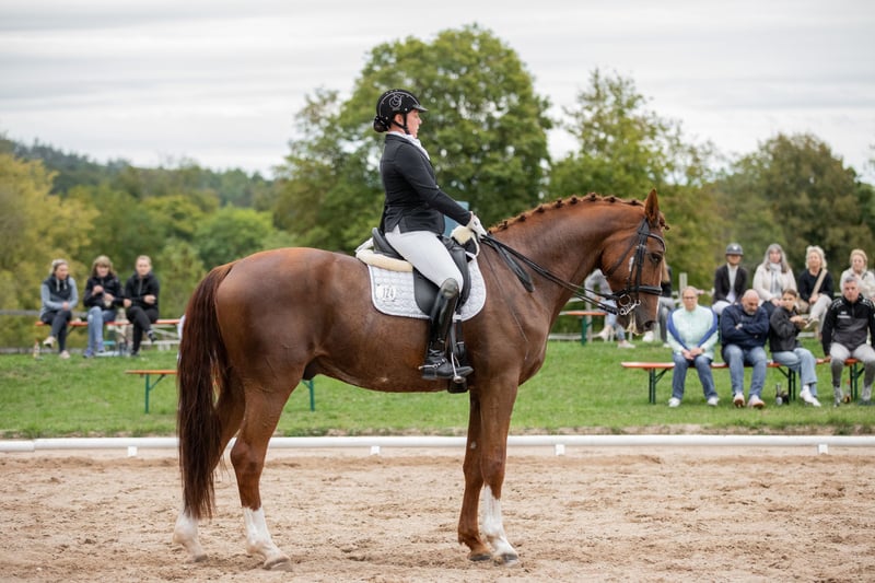 Ancora dal suo allevatore, questo stallone statuario e delicatamente addestrato cerca nuove sfide. Facile da gestire in tutte le faccende quotidiane, si lascia cavalcare con grande finezza. È obbediente e rilassato anche in gara. Si distingue per un passo molto buono, un trotto spettacolare e una forte propensione alla raccolta al galoppo. Attualmente in addestramento con una amazzone di livello Grand Prix. Per ulteriori domande, sono disponibili messaggi di testo o vocali, anche con ulteriori video, esclusivamente al numero di telefono 0171… Durante la prova, riceverete consulenza e assistenza complete e professionali.