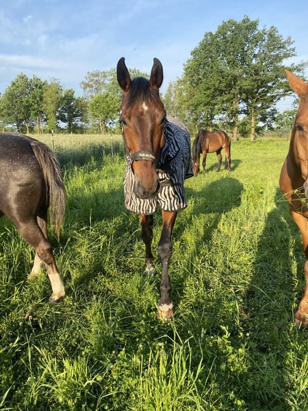 For sale: an elegant Oldenburg gelding, born in 2009. He has an impressive height of 183 cm (approximately 16.1 hh). He requires a confident and experienced rider; with the right partner, he is a reliable and trustworthy companion. In recent years, he has been ridden mainly for leisure and worked from the ground. He is comfortable going alone or in a group in the terrain. I wish for him to find a great home in an open stable environment, as he is accustomed to and prefers this setting to remain unchanged. He is a dominant but fair member of the herd. If you are interested, I am happy to provide further information and arrange a viewing.