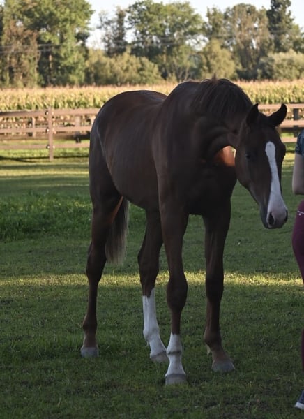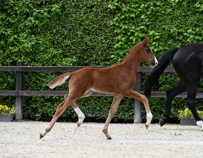 Top prospect for the dressage arena, growing, elegant yearling, already a gelding due to mixed herd, very well raised, always well fed and mineralized, no extensive rearing, very easy to handle, good with the farrier and vet, looking for HIS place, our horses have daily contact with humans. 3 real good basic gaits, not hypermobile, can also canter and walk. Very rideable lineage. Can also stay here for further rearing! Contact: Andrea Pollich, Tel: 0049-1755252297, e-mail: ostpol@t-online.de