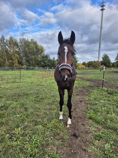 Lieber Wallach . Aufgewachsen im Offenstall mit reichlich Wiese ,er stand auch schon in der Box ( Silvester) . Er ist Halfterführig ,auch schon öfter Anhänger gefahren und beim Schmied ist er eine ruhige Seele. Mutter ist Dressurpferde L platziert und brauchte auch schon ein Fohlen was für die Eliteauktion in Vechta zugelassen war. Der Vater Diamantenglanz glänzt mit reichlich Platzierung und einer sehr guten Hengstleistungsprüfung.