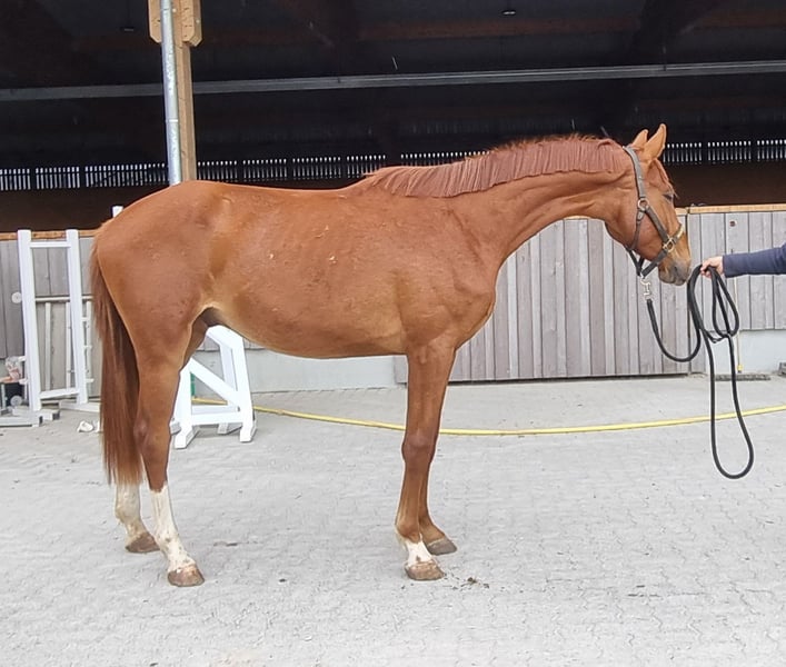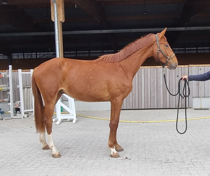 This handsome young man will soon be 2 years old and has a heart of gold. He was raised with me in the Hit Aktivstall in a mixed-age group of young horses. He was gelded at the end of January 25. Final height approximately 168-172cm. He is sure to become a great amateur horse as he is very people-oriented and has a wonderfully gentle temperament. He already loads well into the trailer and stands calmly during transport. He is also familiar with the horse walker. His sire is Escaneno, and his dam is by Depardieu. Pedigree see pictures. For sale due to downsizing to a loving home. Location near Karlsruhe - Southern Germany.