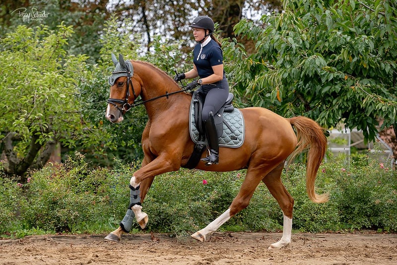 **Sales Advertisement: Oldenburg Gelding** For sale is a beautiful Oldenburg gelding, born in 2022. With his striking chestnut color and a height of 166 cm, he is not only an eye-catcher but also a promising talent for dressage. Skydancer is professionally started under saddle and comes directly from a dedicated breeding facility. This young gelding impresses with his quality of movement and friendly disposition. He is well-mannered, easy to handle, and is already showing initial progress in his training. Ideal for riders looking for a promising dressage horse and who enjoy working together. He is suitable for both amateur and ambitious riders and offers great potential for the future. If you are interested or have any further questions, please feel free to contact me. Viewings are possible by appointment. Don't miss this opportunity!