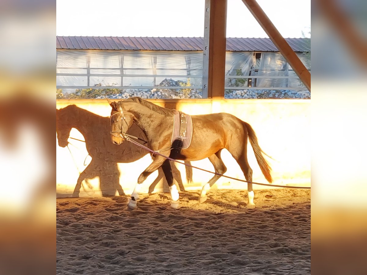 Este joven caballo de doma en desarrollo, de color castaño oscuro, nació el 15 de junio de 2023. Se mueve con mucha soltura por todo el cuerpo, con una base sólida y bien formada. Tiene tres aires básicos muy buenos, con mucha elasticidad, amplitud, ritmo y cadencia. Es muy dócil y, acorde a su edad, ya está siendo trabajado en longe. Hemos decidido no presentarlo aún para la selección de sementales, ya que todavía es muy joven y necesita algo más de tiempo para desarrollarse. Crece en nuestro establo activo, en una manada de 20 caballos compuesta por potros, caballos en edad adulta y caballos retirados, por lo que está muy bien socializado. Estimamos que su tamaño final será de aproximadamente 1,70 m. Se vende a causa de una reducción de la cabaña, a manos de criadores que puedan potenciar su desarrollo. También puede quedarse con nosotros para continuar su cría o incluso para su entrenamiento. Opcionalmente, puede ser castrado si se desea. No dispone aún de un informe de aptitud veterinaria (AKU) ni radiografías, pero puede realizarlas si se requiere.