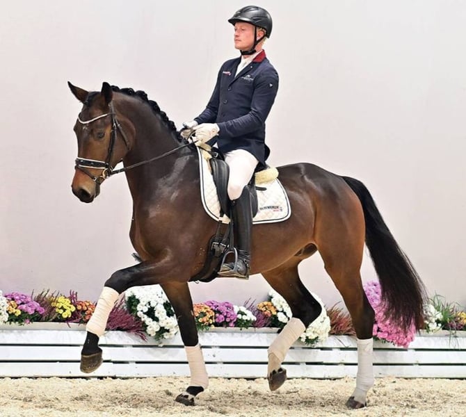 Highly promising dressage young horse, still heavily influenced by his grandsire, with a high rideability and excellent basic gaits. His sire, Dynamic Dream, was the champion stallion of his licensing. His dam's sire, Fidertanz, is one of the most reliable Grand Prix horse producers of modern times.