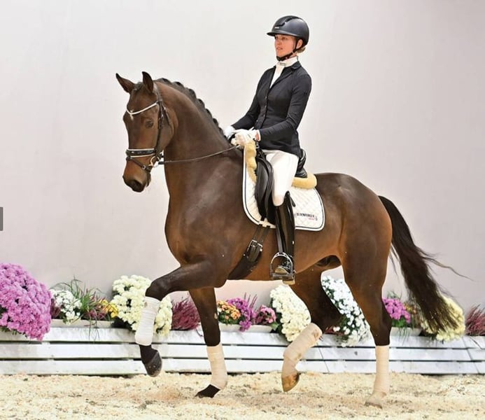 Großgewachsener Jüngling mit viel Qualität ausgestattet, leistungsbereit und leichtrittig. Bruder Giccolo ist gekört und S-erfolgreich mit Lisa Bartz, ITA. Bruder Doncity wechselte 2017 über die Elite-Auktion in die USA. Vater Knock-Out ist siegreich in der Klasse S mit Matthias Bouten.