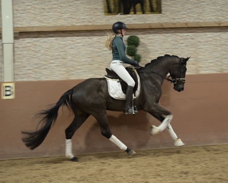 Gentili Interessati, Per prenotare un appuntamento per una prova di monta, vi prego di inviarmi un messaggio WhatsApp. Per ulteriori domande, sono disponibile durante il giorno su WhatsApp, mentre il telefono è preferibilmente raggiungibile tra le 16 e le 19. Non vedo l'ora di entrare in contatto con voi. www.angelina-devittorio.de ⭐️Vittorio⭐️ Età: 3 anni (2022) Altezza: attualmente circa 1,62 m (ancora in crescita e sviluppo!! La amazzone nella foto ha 1,76 m) Pedigree: V-Plus x Diamo Gold Stato di formazione: ben avviato alla monta Röntgen: radiografie di buona qualità disponibili In vendita un bellissimo figlio di V-Plus! Giovane cavallo di alta qualità con tre ottimi passi fondamentali. Questo splendido stallone non solo conquista per la sua qualità eccellente, ma anche per il suo carattere affabile e lucido. Possiede un trotto eccezionale, un passo sopra la media e un buon galoppo. È a livello di cavallo da dressage, ha già familiarità con ambienti sconosciuti e prime uscite in passeggiata, e desidera sempre piacere. Conosce anche il salto libero e piccoli ostacoli, dimostrando ottime qualità da cavallo versatile. Molto interessante anche per le discipline di salto e cross. È già molto mansueto anche nel rapporto con le persone. Assolutamente adatto a cavallerizzi amatoriali, quindi è preferibile avere un po’ di esperienza con cavalli giovani. Questo cavallo è un vero sogno e porterà molta gioia al suo futuro proprietario. Diretto dall’allevatore. ⚜️Telefono: 0171-3438949 ⚜️a.devittorio@web.de ⚜️https://www.ehorses.de/angelinadevittorio Facebook e Instagram Angelina De Vittorio