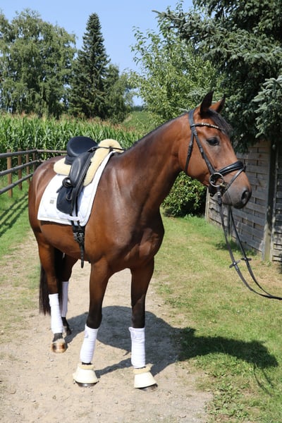 Franzl ist ein 4-jähriger Wallach, der vor wenigen Wochen schonend unter dem Sattel angeritten wurde und sich dabei von Beginn an als echtes Verlasspferd zeigt. Er überzeugt durch seine Rittigkeit, Lernbereitschaft und eine positive Arbeitseinstellung. Im Gelände präsentiert er sich absolut brav und gelassen und auch im täglichen Umgang ist er unkompliziert und angenehm. Seine drei sehr guten Grundgangarten bieten viel Entwicklungspotential für die weitere Ausbildung und machen ihn zu einem vielversprechenden Nachwuchspferd für den Sport oder ambitionierten Freizeitreiter. Franzl begeistert nicht nur mit seinem Bewegungspotential, sondern vor allem durch seinen einzigartigen Charakter, der die Arbeit mit ihm zu etwas ganz Besonderem macht. Standort: Ennepetal Preis: 25.000 € VB Bei Interesse freuen wir uns jederzeit über Ihre Kontaktaufnahme und schicken auch gerne Videos!