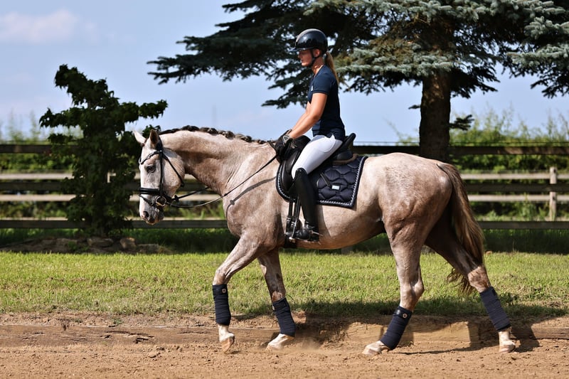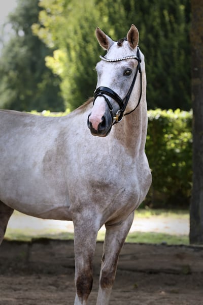 Dieser wunderschöne menschenbezogene Wallach ist ein Traum im Umgang und beim Reiten. Silver beherrscht sicher alle drei Grundgangarten im Viereck unter dem Reiter und kennt einfache Hufschlagfiguren. Dabei zeigt er sich stets als Musterschüler, der schnell lernt. Silver möchte mit feiner Hand und wenig Druck altersgerecht vorwärts-abwärts geritten werden, da er leicht durchs Genick zu reiten ist. Er reagiert gut auf Gewichtshilfen. Ausreiten ist seine Leidenschaft! Er geht gerne alleine oder zu zweit ins Gelände, sowohl entspannt im Schritt am langen Zügel als auch in einem frischen Galopp übers Feld. Aber er ist immer leicht zu händeln. Silver genießt es, ausgiebig geputzt und gewaschen zu werden, auch beim Einflechten und Einbandagieren ist er tiefenentspannt. Silver geht problemlos zum Schmied und brauchte dank seiner guten Hornqualität bisher keine Eisen. Seine Mutter lief selbst erfolgreich im Dressursport bis M**. Wir können ihn uns gut als Partner für eine gefühlvolle Jugendliche mit Turnierambitionen oder als Familienpferd vorstellen. Silver ist wie alle unsere Pferde auf großen Flächen aufgewachsen. Sie haben vom ersten Tag an viel frische Luft und Bewegung. Sie leben dabei im Herdenverband mit Spielgefährten. Das Einreiten erfolgt durch uns mit Ruhe, Erfahrung und Konsequenz und nur bei ausreichender körperlicher und psychischer Reife. Direkt vom Züchter. Anfragen vorzugsweise direkt per Telefon/WhatsApp.