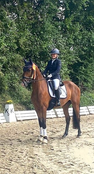 Dieser junge Wallach überzeugt durch seine Rittigkeit, Lernfreude und Ausstrahlung - ein echtes Nachwuchspferd mit Zukunft. Trotz seines jungen Alters kann er bereits mehrfache Platzierungen in Reitpferdeprüfungen sowie einen Sieg vorweisen und präsentiert sich aktuell auf dem Niveau der Dressurpferde A. Die Lektionen der Dressurpferde L erarbeitet er bereits spielerisch und mit viel Leichtigkeit. Seine Nervenstärke und Unerschrockenheit machen ihn zu einem zuverlässigen Partner, der auch in neuen Situationen stets gelassen bleibt. Im Gelände zeigt er sich sicher und entspannt, dazu ist er schmiede- und verladefromm. Vodka ist ein unkompliziertes Pferd, das im täglichen Umgang einfach Freude bereitet. Dank seiner schnellen Auffassungsgabe und seiner hohen Lernbereitschaft entwickelt er sich stetig weiter und zeigt schon heute das Potenzial für den gehobenen Dressursport. Mit seiner positiven Arbeitseinstellung, seinem Bewegungspotenzial und seinem ausgeglichenen Wesen bringt er alles mit, was man sich von einem modernen Nachwuchspferd wünscht. Ein Video kann auf Anfrage zugesendet werden.