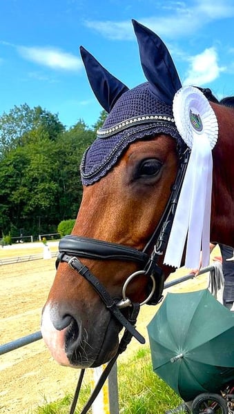 This young gelding impresses with his rideability, eagerness to learn, and presence – a genuine prospect with a bright future in the sport. Despite his young age, he already has multiple placings in young horse classes and a win to his name. Currently, he competes at the level of dressage horse class A. He is already working through the lessons of dressage horse class L with ease and playfulness. His calm temperament and fearless nature make him a reliable partner who remains composed even in new situations. Out in the field, he is confident and relaxed; he is also shoe and loading friendly. Vodka is an uncomplicated horse that simply brings joy in daily handling. Thanks to his quick grasp and high willingness to learn, he is constantly progressing and already shows potential for higher-level dressage. With his positive work attitude, his movement potential, and his balanced character, he possesses everything one would wish for in a modern young dressage horse. A video can be sent upon request.