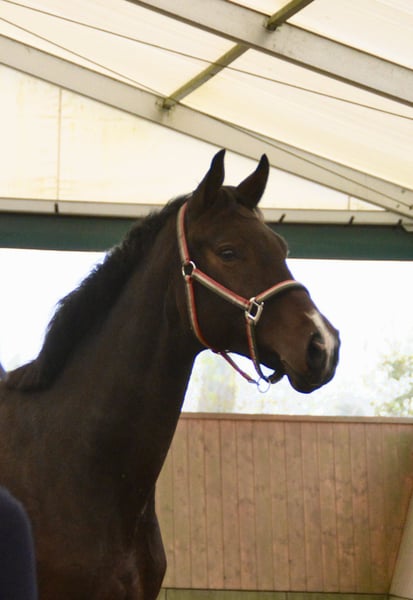 Gelding, 3 years old By Fürst Wilhelm Dark bay Valid GGA (conformation assessment) The gelding is unbroken.