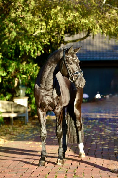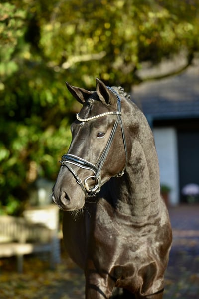 Ein Traumpferd in jeder Hinsicht: Wer Ben sieht, ist begeistert: Sein Charisma, seine Ausstrahlung, seine Rittigkeit, seine Qualität - ein absolut komplettes Pferd, das alles mitbringt für den großen Sport: Schwung, Takt, Elastizität, top Galoppade und sehr guter Schritt - und das alles noch jugendlich frisch, erst ein paar Monate unter dem Sattel, mit wunderbarer Rittigkeit und top Temperament. Wir meinen: Ein Traumpferd! Dieser nun vierjährige Glanzrappe stammt ab vom Siegerhengst Bellany, der in seiner HLP u.a. für die Rittigkeit 9.0 bekam und in seiner ersten S-Saison bereits Siege feiern konnte. Muttervater Millennium hat zahlreiche Top Hengste und Grand Prix Pferde geliefert, ein Vollbruder zu Ben’s Mutter ist in Amateurhand S-erfolgreich. Der Stamm ist nach klassischem Oldenburger Erfolgsrezept Donnerhall-Pik Bube weiter gezogen und hat top Dressursportler wie u.a. Grand Prix Hengst Don Primaire hervor gebracht. Wer das besondere sucht - Charme, Schmelz, Qualität, Rittigkeit und Temperament - der wird Ben lieben. Erst im Dezember kastriert, hat er einen herrlichen Hengst-Ausdruck behalten. Dabei immer cool und einfach ein Traum im Umgang. Digitaler Röntgentüv vorhanden. Standort: 49377 Vechta