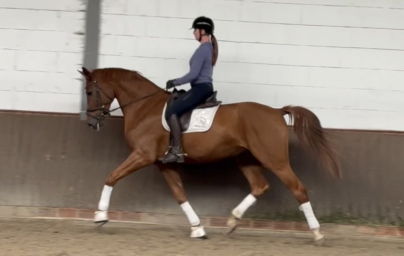 Liebe Kaufinteressenten, Für Fragen oder Terminvereinbarungen senden Sie uns bitte eine WhatsApp oder E-Mail. Telefonisch erreichen Sie uns WERKTAGS und am besten gegen Mittag. Sollte dem nicht so sein, bitte einfach eine Nachricht schreiben und wir melden uns zurück. Wir freuen uns auf Ihre Kontaktaufnahme! „Berny“ ist ein sehr sympathischer und unglaublich liebenswerter Wallach, der mit drei guten Grundgangarten und der richtigen Arbeitseinstellung ausgestattet ist. Bereits bei seinen ersten Turnierstarts konnte er direkt in einer Reitpferdeprüfung mit Platz 3 und in einer Dressurpferdeprüfung der Klasse A mit Platz 2 von sich überzeugen und zeigt auch in der fremden Turnier-Atmosphäre absolutes Vertrauen und Wohlwollen gegenüber seinem Reiter. Er möchte einfach immer gefallen und ist auch im Umgang ein richtiger „Taschenkriecher“. Ein ganz toller Youngster, mit dem man direkt gemeinsam durchstarten kann. Direkt vom Züchter. Guter TÜV vorhanden.