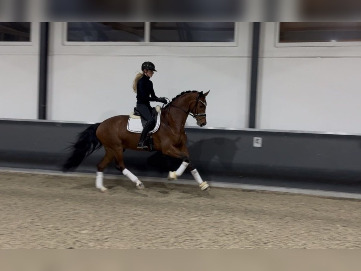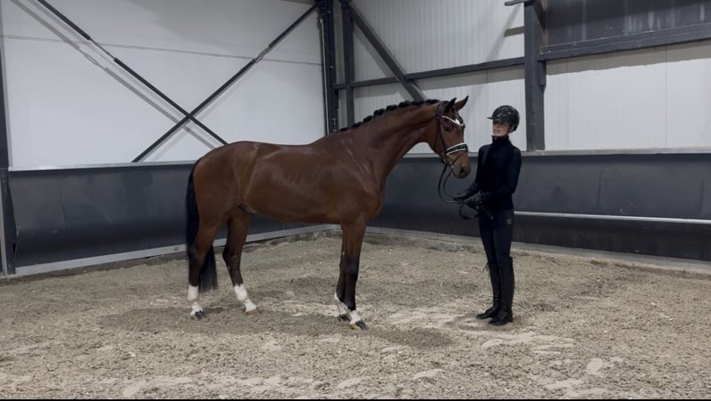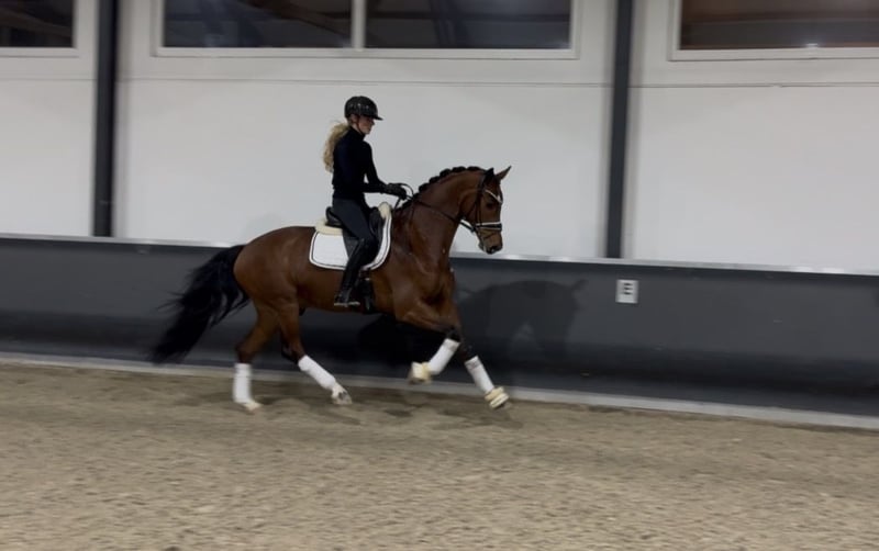 Quality meets character. Beautiful Oldenburg gelding, foaled in 2021. This young star combines a modern type with an excellent temperament. - Approximately 16.1 hh - Gentle ridden and well-trained - Clever and easy to handle - Perfect for an ambitious amateur The only drawback is that he tends to lean. For serious inquiries, please feel free to contact us at 01714741200.