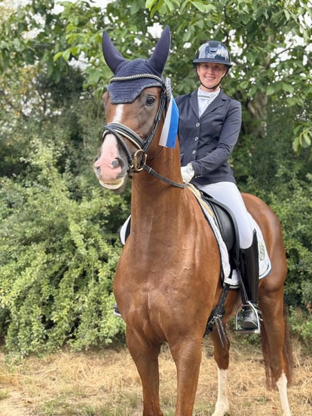 💫Top Scorer - Traumfuchs mit Top-Qualität💫 ❤️Secret Diamond ❤️ 🍀2020 Old gelding by So Unique-Danciano 🏆Dressage horse class A 2nd & 3rd Scores over 8 🔛https://youtu.be/2v0zVIyTzJM 🐴Dieser traumhaft schöne Strahlemann verzaubert mit seinem Charme, seiner Rittigkeit und seinen top Grundgangarten mit einem überragendem Schritt. 💕Secret Diamond begeistert auch auf dem Turnier und war bisher zweiter und dritter mit Top-Noten über 8 unter einem jungen Mädchen. Ein Traumpferd im Hengsttyp stehend, super im Umgang, leistungsbereit und leicht zu fördern wird er nun auf Dressurpferde L weiter vorbereitet. Er macht immer Spaß, genießt auch einen schönen Ausritt und ist einfach ein absoluter Hingucker, der auch auf dem Turnier stets positiv aufgefallen ist. 🎖️Sunny ist ein Ebenbild seines Vaters So Unique, der dreijährig Bundeschampion unter Eva Möller war, fünfjährig Bundeschampionats-Finalist und bis S-Dressur erfolgreich ist. 🥇Muttervater Danciano ist selbst bis Grand Prix erfolgreich und stellte bereits zahlreiche Grand Prix-Pferde unter seinen Nachkommen. ✴️Secret Diamond ist der ideale Kandidat für ambitionierte Sportreiter. Ein herrliches Nachwuchspferd, das wir uns auch gut als künftiges Children/Junioren/Junge Reiter Pferd vorstellen können. ⚠️Aktueller Röntgentüv vorhanden. 🏡Standort: 49429 Visbek
