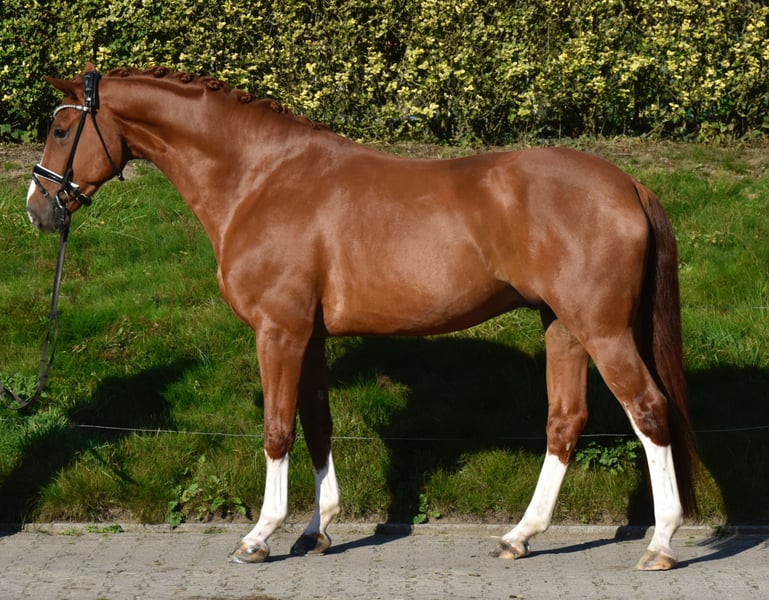 Zu Verkauf steht dieser schicke 5-jährige, ca 170cm große Wallach von Erdinger x Fidertanz. Erlkönig ist sowohl im Umgang als auch unter dem Sattel sehr brav, gelassen und unerschrocken. Dank seiner tollen Aufmachung ist er schon auf den ersten Blick ein echter Hingucker. Er bringt drei sehr gute Grundgangarten mit, insbesondere einen sehr schwungvollen Trab und immer im Bergauf angelegten Galopp. Mit bester Rittigkeit und Lernwilligkeit ausgestattet, konnte er sich schon mehrfach auf dem Turnier beweisen und ist bis Dressurpferde A siegreich. Altersentsprechend wird er derzeit in Richtung Dressurpferde L gearbeitet. Er macht zur Abwechslung ebenfalls einen sehr guten Sprung, was mit weiterer Förderung sicherlich gut ausbaufähig ist. Ebenfalls geht er gerne eine Runde ins Gelände und ist verträglich mit anderen Pferden. Er ist ein rundum freundliches Pferd mit viel Qualität, der sich daher auch wunderbar für jüngere Nachwuchsreiter anbietet. Erlkönig wird direkt vom Züchter verkauft. Die Röntgenbilder waren 3-jährig ohne Befund. ‼️Bei Interesse und für Videos bitte ausschließlich per WhatsApp oder Telefon unter 0176/21729218 melden, Anfragen über Ehorses werden nicht beantwortet. ‼️