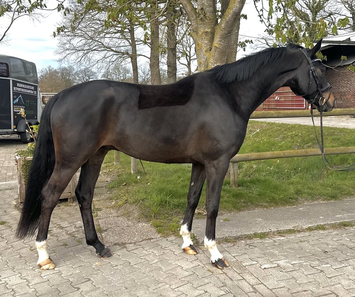 Rocket ist ein 5-jähriger Wallach, der seinem Namen alle Ehre macht – mit Ausstrahlung, Qualität und ganz viel Charme. Mit seinen ca. 1,73 m Stockmaß und seiner dunkelbraunen Jacke ist er ein echter Hingucker. Abstammend von Incognito x San Amour bringt er beste Voraussetzungen für den Sport mit. Seit seinem Fohlenalter ist Rocket in meiner Hand und hat sich zu einem unglaublich liebenswerten, verschmusten und menschenbezogenen Partner entwickelt. Er wurde bewusst schonend ausgebildet und erst 4-jährig angeritten, da er die Zeit bekommen sollte, in Ruhe zu wachsen und sich zu entwickeln. Nach den ersten Erfahrungen unter dem Sattel durfte er den Sommer auf der Weide verbringen, um alles Gelernte zu verarbeiten. Aktuell steht Rocket seit 5 Monaten im professionellen Beritt und zeigt sich dort sehr lernwillig und motiviert. Er kann vor Ort ausprobiert werden, Videos sowie ein aktueller TÜV liegen vor. Rocket ist sensibel und hat ein kleines „Hasenherz“, weshalb er einen sicheren und einfühlsamen Reiter braucht. Mit den richtigen Menschen an seiner Seite bringt er jedoch alles mit, um im großen Viereck zu glänzen. Er ist kein Anfängerpferd. Ich wünsche mir für ihn ein liebevolles Zuhause mit Familienanschluss, wo er weiterhin gefördert und geschätzt wird.