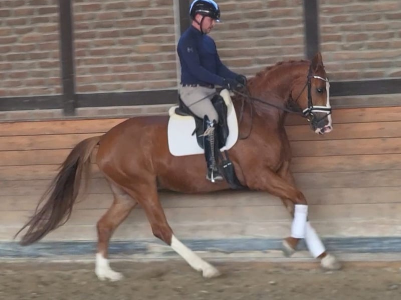 Benni is a five-year-old chestnut gelding with a super rideability, honest, well-behaved and still willing to perform. In the meantime, he is confident in novice level dressage / on the way to elementary level and can be used immediately for competitions. Benni is always in a good mood, the buddy type. He has a very sweet character. He gives you the feeling that he loves being together with his owner on a daily basis. He gives you attention and keeps you busy. He has plenty of enthusiasm when riding and is always focused at work, learns very quickly and is 100% clear in his head. Benni can also be ridden by younger or weaker riders. Ideally with support through lessons or riding. Breeder's X-ray certificate available, X-ray pictures can be sent by email. You are welcome to make an appointment for a test ride and to get to know each other at 0176-20496034, also via Whatsapp. During the week or at the weekend, both are fine! Benni is stabled at the Uhlerborn equestrian center, Budenheimer Weg 41-45, 55262 Ingelheim district Heidesheim (This is a private horse sale, the horse is privately owned, not a commercial dealer. The contact persons in this advertisement are only to be regarded as contact persons, such as riders, caretakers of the horse, and are not at the same time the owners of the horse for sale).