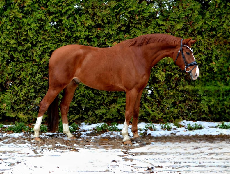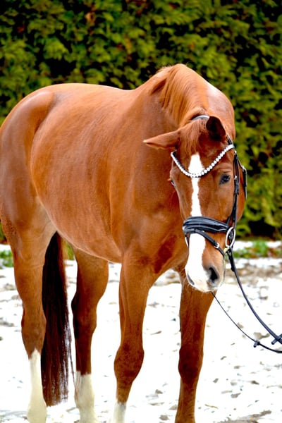 Dieser 5 jährige Wallach weiß wie er seinen Reiter glücklich machen kann! Immer lieb , leichtrittig und unerschrocken ist er eine Freunde in der täglichen Arbeit. Trotz seines noch jungen Alters absolut verlässlich. Mit einem derzeitigen Stockmaß von 172 deckt er auch problemlos größere Reiter ab. In der Dressur konnte er sich bereits bis zur Klasse L platzieren, darüber hinaus geht er problemlos ins Gelände und macht auch einen kleinen Sprung. Ein kompletter tüv liegt vor. Zum Schutz vor Reittourismus berechnen wir 40€ für das Probereiten, welche beim Kauf verrechnet werden!