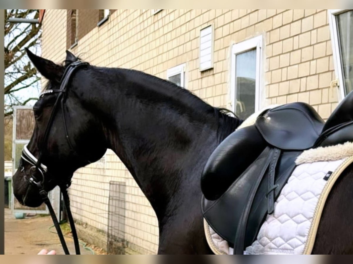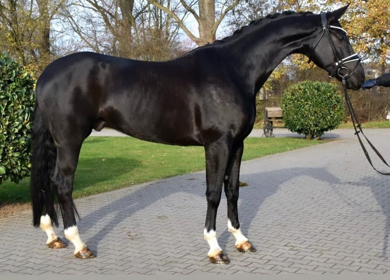 On behalf of Opportunity!!!! For someone who otherwise cannot afford a horse with this training level/quality. Beautiful 6-year-old gelding – 17.3 hh – stunning black gelding with four white markings This exceptionally typey gelding impresses not only with his noble appearance but especially with his affectionate character and three outstanding basic gaits. Training Finished with Level L dressage horses Started with Level M dressage horses Always motivated and eager to learn Gaits Walk: diligent, rhythmical, with clear overstep Trot: lively, elastic, and comfortable to sit Canter: uphill, powerful from the hindquarters, well-balanced Plenty of collection potential Interior & Behavior An absolute sweetheart: affectionate, people-oriented, and cuddly Knows terrain – both alone and in a group Loads onto our trailer without issues Farrier-friendly Spends at least 4 hours daily on the paddock, summer turnout on pasture Health Regularly vaccinated and dewormed Well-maintained care and meticulous management A large health certificate is available, including clinical and radiological examinations of the legs and back. He has mild shivering, which is why he is priced well below market value! This does not affect his riding ability. Trial riding fee is €40, which will be credited towards the purchase price.