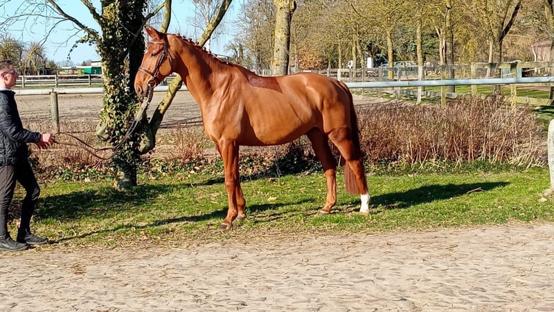 Verkaufe einen vielversprechenden Oldenburger Wallach, geboren im Jahr 2020. Der elegante Fuchs besticht durch sein Charme und Lernwilligkeit. der Wallach wurde aufgrund des Wachstums erst Ende 5jährig angeritten und ist noch völlig unverbraucht. Mit seinem harmonischen Exterieur und seiner aufgeschlossenen, lernwilligen Art ist er ideal für ambitionierte Reiter, die einen zuverlässigen Partner für den Dressurviereck suchen. Der Wallach ist gut geritten und aufmerksam. Ein echtes Talent mit großem Entwicklungspotenzial. Bei Interesse freuen wir uns auf Ihre Kontaktaufnahme.