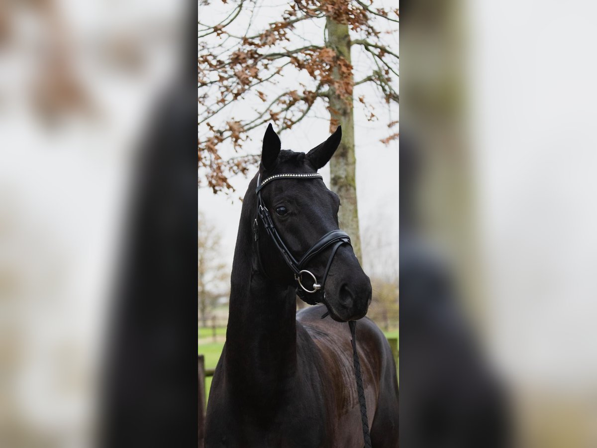 5.5-year-old gelding by Maracana x Sarkozy x Del Piero – 174 cm (approx. 17.1h) Meet this super charming and clever black beauty! Maestro is a fun, sweet-natured horse with a heart of gold. He is soft and sensitive, yet not hot or touchy—an ideal combination for a rider who appreciates a willing and responsive partner. His ability to learn is truly impressive; he understands new things incredibly fast and shows remarkable intelligence. He is naturally supple through his body. Although he has only been in full training for two months and arrived going at a basic 4-year-old level, he is already performing half-passes in both trot and canter. The flying changes he understood from the very beginning, and he will no doubt be able to do tempi changes easily within the next six months. His walk is active and ground-covering, and in canter he jumps nicely uphill, showing excellent potential for beautiful pirouettes next year. The trot is expressive with good cadence and activity. For the extended trot, he still needs some time to really open up rather than rush, but the talent is absolutely there. Maestro is also a fantastic investment horse due to the price and (short term) potential. If I had the budget, I would keep him myself for another 6–12 months of training and then resell him. Please do not contact me or amateur riders. This horse has too much talent to go to waste. Located near Ghent, Belgium. Priced in the mid five figures. Full set of X-rays available.