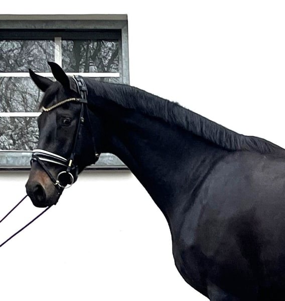 Großrahmiger Wallach mit allen Möglichkeiten. Leichtrittig, mit viel Geist ausgestattet und stehts leistungsbereit, möchte er jeden Tag gefallen. Er ist bereits in Dressurpferdeprüfungen der Kl. M erfolgreich vorgestellt worden. Neben seiner raumgreifenden Gallopade und schwungvollen Trab, besticht er durch seinen sehr sicheren Schritt.