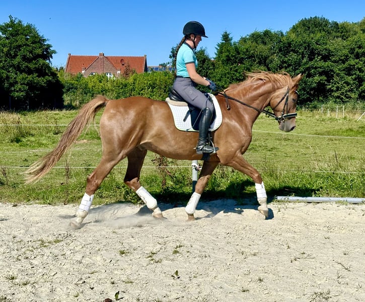 Te koop is mijn prachtige Oldenburger ruin van Best of Gold. Hij is 7 jaar oud en 1,65 m groot. Karakterieel is hij een aanhankelijke en knuffelige jongen, op de manege is hij leergierig met niet te veel go. Nieuwe ruiters test hij een beetje uit, maar met enige consequentie is dit snel opgelost, kwade bedoelingen heeft hij nooit. Hij heeft echter wel een duidelijke en ervaren hand nodig en is daardoor niet geschikt voor beginners. Door zijn vader Best of Gold, die al hoog geplaatst is tot Prix St. Georg, brengt hij goede dressuurgenen mee. Onder het zadel maakt hij een geweldige indruk en door zijn mooie gangen is hij zeker geschikt voor verdere dressuuropleiding. In het terrein mist hij nog wat routine. Schriktraining, tractortraining enz. beheerst hij echter al heel goed. Bij mij staat hij samen met 2 paarden in een buitenstal, boxenhuisvesting is voor hem echter ook geen probleem. Hij is eerder ranghoog. Verder is hij gezond, geen allergieën of dergelijke. Ongehoefd. In 2022 is hij volledig doorgelicht zonder enige bevinding. Hoefsmid en trailer rijden is geen probleem. Helaas moet ik hem om tijdsredenen wegdoen, omdat ik hem door mijn werk gewoon niet de aandacht kan geven die hij verdient. Video's en andere foto's kunnen gerust via WhatsApp worden verzonden. Bezichtiging en proefrijden is bij serieuze interesse natuurlijk mogelijk.