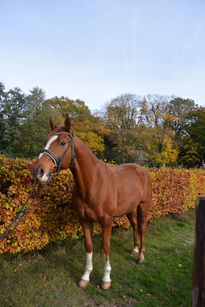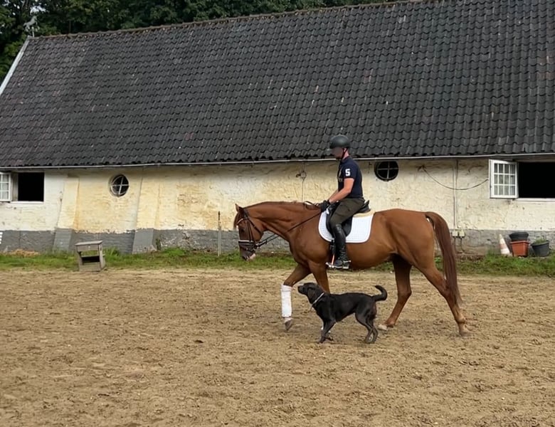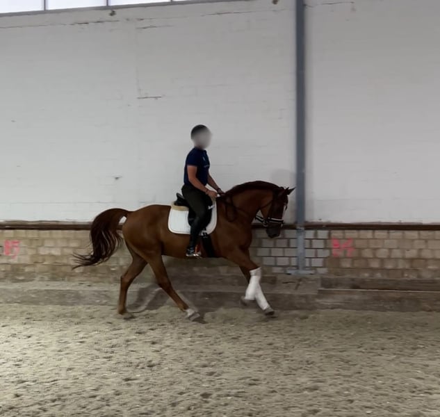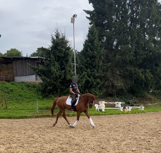 Fidelio Solero – 6-year-old gelding by Franziskus x De Niro Solero is an absolute dream horse, impressing not only with his pedigree and talent but especially with his wonderful temperament. Why Solero is a true find: * Charismatic personality: well-behaved, people-oriented, affectionate – a horse that loves to please. * Excellent rideability: sensitive to aids, responds well to voice commands, comfortable to sit. * Calm & steady: whether in the arena, on the trail, or in everyday life. * Training with potential: confidently at good novice level, some advanced L-level lessons mastered. * Good size: approximately 165 cm (16.1 hh), ideal for larger riders (up to 183 cm). No vices. No fussiness. Simply a horse that makes riding enjoyable. He always wants to please and does everything asked of him. He learns incredibly quickly and is a real pleasure to ride every time. Overview of qualities: * Three good basic gaits * Farrier & loading absolutely trouble-free * Enjoys working over poles * Friendly to humans, dogs, and other horses Whether you're a leisure rider with high standards or an ambitious beginner in competitions – Solero is ready to become your new heart horse. 📍 Location: Aachen Viewing and trial riding available anytime by arrangement – we charge €30, which will be credited towards the purchase price! If you are looking for a reliable, well-trained, and lovable horse, you should definitely get to know Solero! Videos can be sent upon request. We look forward to hearing from you!